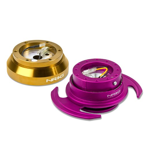 NRG-SRK-140H-RG+650PP, NRG Innovations Steering Wheel 6-Hole Aluminum Ball Bearing Short Hub Adapter with Gen 3.0 with Handle Purple Quick Release SRK-140H . NRG Quick Release features many options that conventional ball-locking quick release system do not. It is specially engineered with raised sections to prevent the scratching and stretching of the hub while a self locking feature adds increased safety and functionality. Features racing styled for added style and look. Each unit is made from the highest quality aircraft grade aluminum and is anodized for maximum durability and finish.