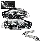 Carpart4u Audi A4 ( Will Not Fit Convertible ) DRL LED Chrome Projector Headlights and LED Day Time Running Light Package